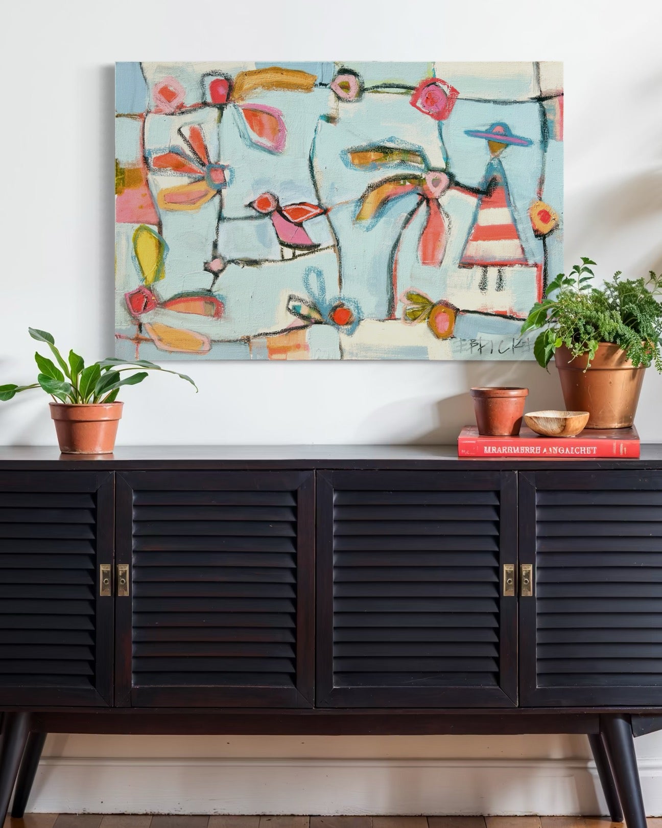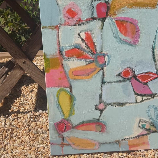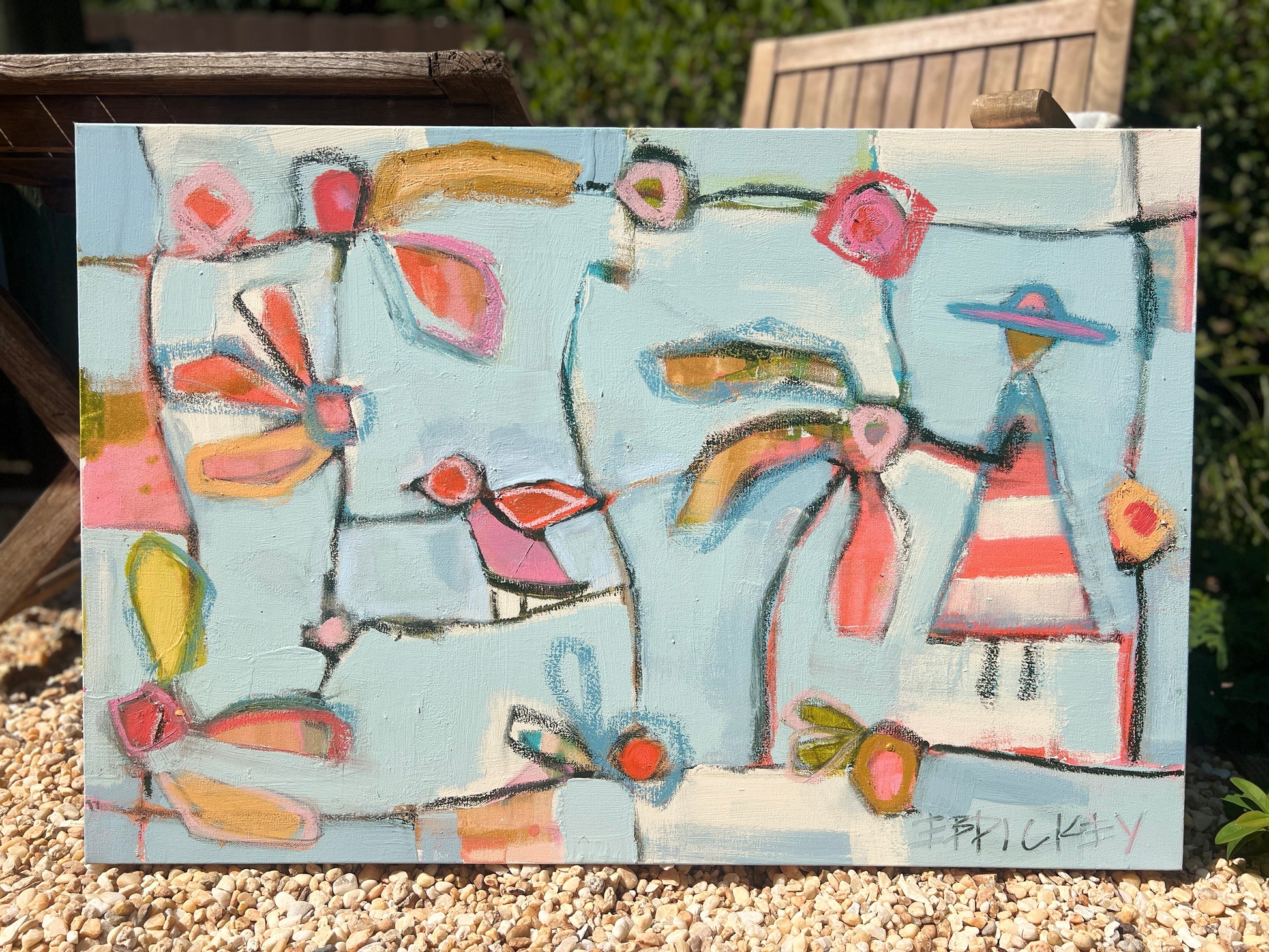24x36”, oil and acrylic on gallery wrapped canvas. This narrative piece shines some sunlight on the ties that bind us together.