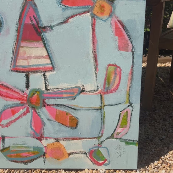 24x36”, oil and acrylic on gallery wrapped canvas. This narrative piece shines some sunlight on the ties that bind us together.
