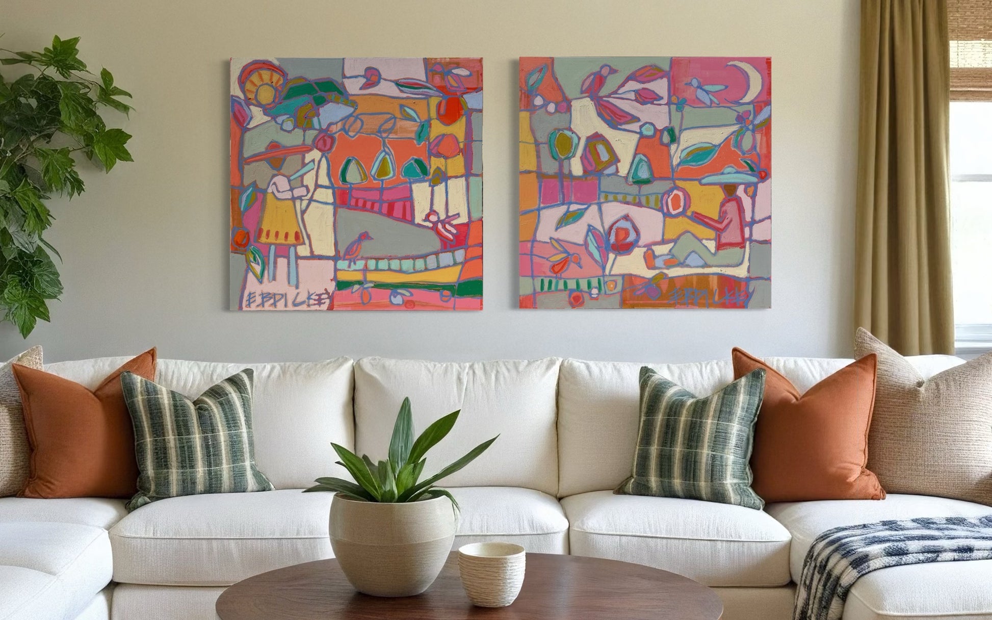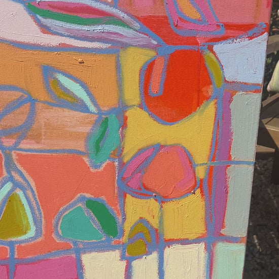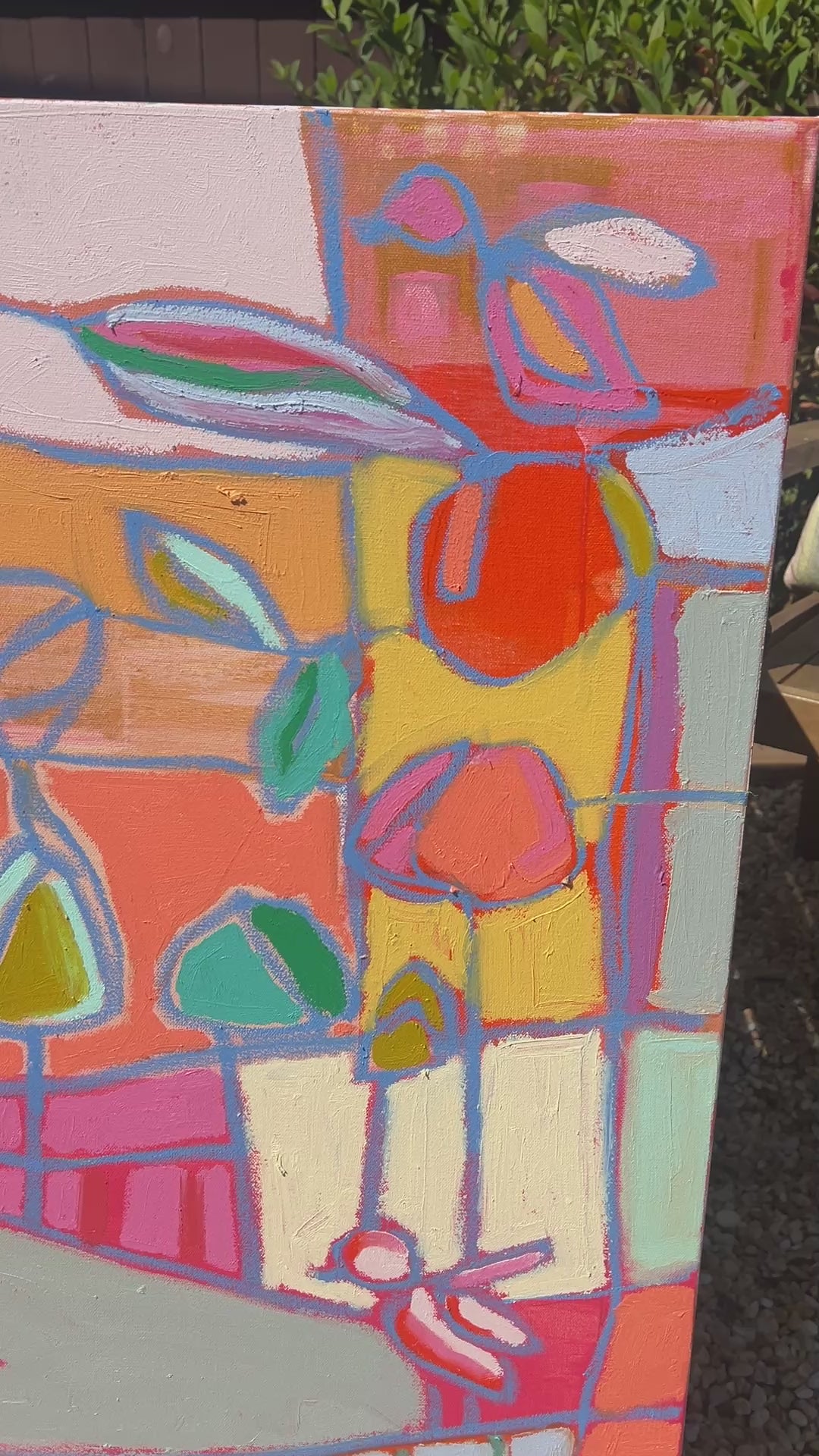 36x36” oil, acrylic, charcoal on gallery wrapped canvas. This narrative piece was created first with a layer of poured acrylic and then covered with rich, textured oil. It tells the story of deep soul connection- between us and our living world.