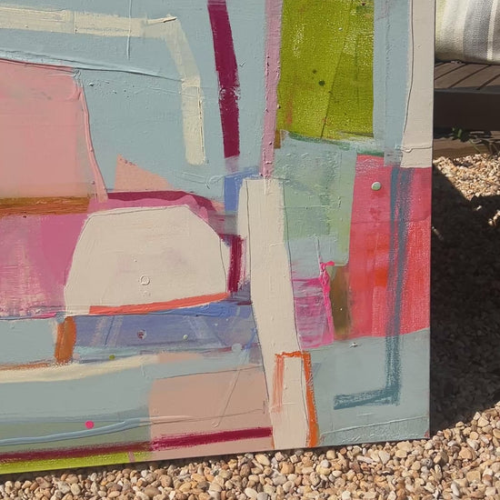 36x36” oil, acrylic, charcoal, collaged thai paper on gallery wrapped canvas. This abstract composition was built with intuitive layers, woven together over a series of 6 weeks alongside the building of this collection.
