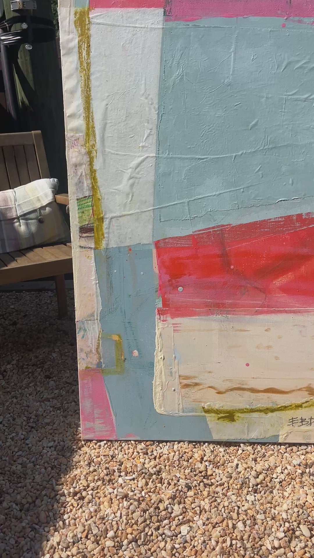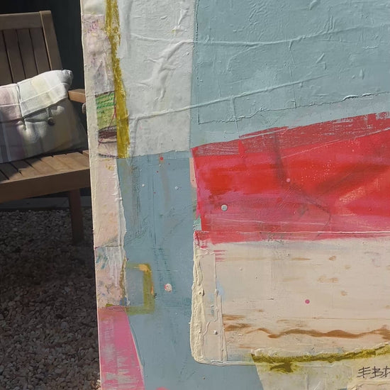 48x36” oil, acrylic, charcoal, collaged thai paper on gallery wrapped canvas. This abstract composition was built with intuitive layers that nod at elements of plant life and the growth that has come to symbolize within this body of work. The parts and pieces have been deconstructed and then woven together again throughout the building of this collection. Can be hung vertically or horizontally.