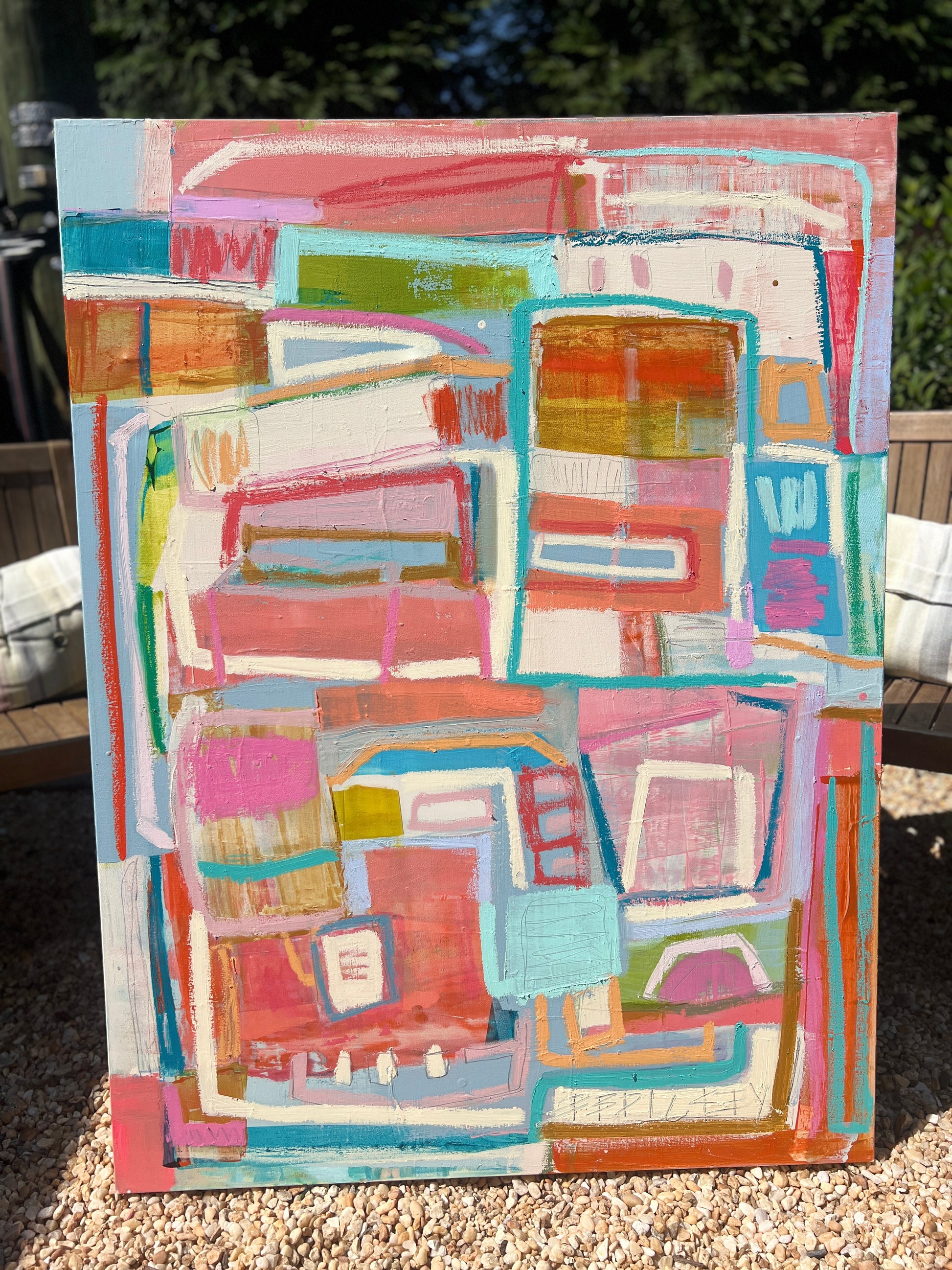 48x36” oil, acrylic, charcoal on gallery wrapped canvas. This abstract composition is built with woven layers of acrylic and oil - connecting into one another with both intuitive mark making and intentional bridge building.